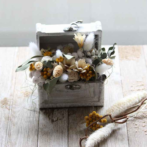 | メーカー | 値下げ 鋳物?フラワーBOX 新品未使用品 ミニサイズのドライフラワーBOXアレンジ1 |