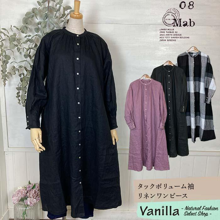 | メーカー | リネンピンタックボリューム袖ロングワンピースネイビーチェック美品 08Mab(ゼロハチマブ) |