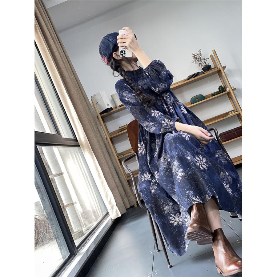 - レディース > ワンピース > 美品 RRL 花柄 長袖 ロング シャツワンピース 麻混 4 L ベルトひも 紺 ワンピース レディース 春夏 綿麻シャツ ロング丈 花柄ワンピース 長袖