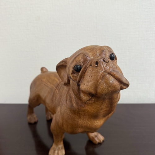 - 美術品・アンティーク・コレクション > 彫刻・オブジェ > ヴィンテージ ブルドッグ ブロンズオブジェ 】パグ・フレブル・ブル・銅像彫刻 スワールウッド 天然無垢材 フレブル 木彫り 犬の置物 オブジェ 手彫り