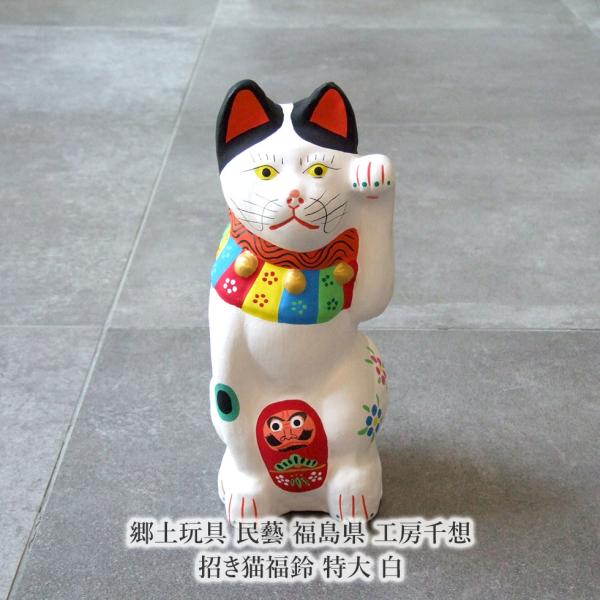 - 美術品・アンティーク・コレクション > 工芸品 > おめでたい③お正月玄関に 明治時代 鯛猫 ガラ入 古い練り人形 土人形 郷土玩具 郷土玩具 民藝 福島県 工房千想 招き猫福鈴 特大 白 縁起物 置物 開運