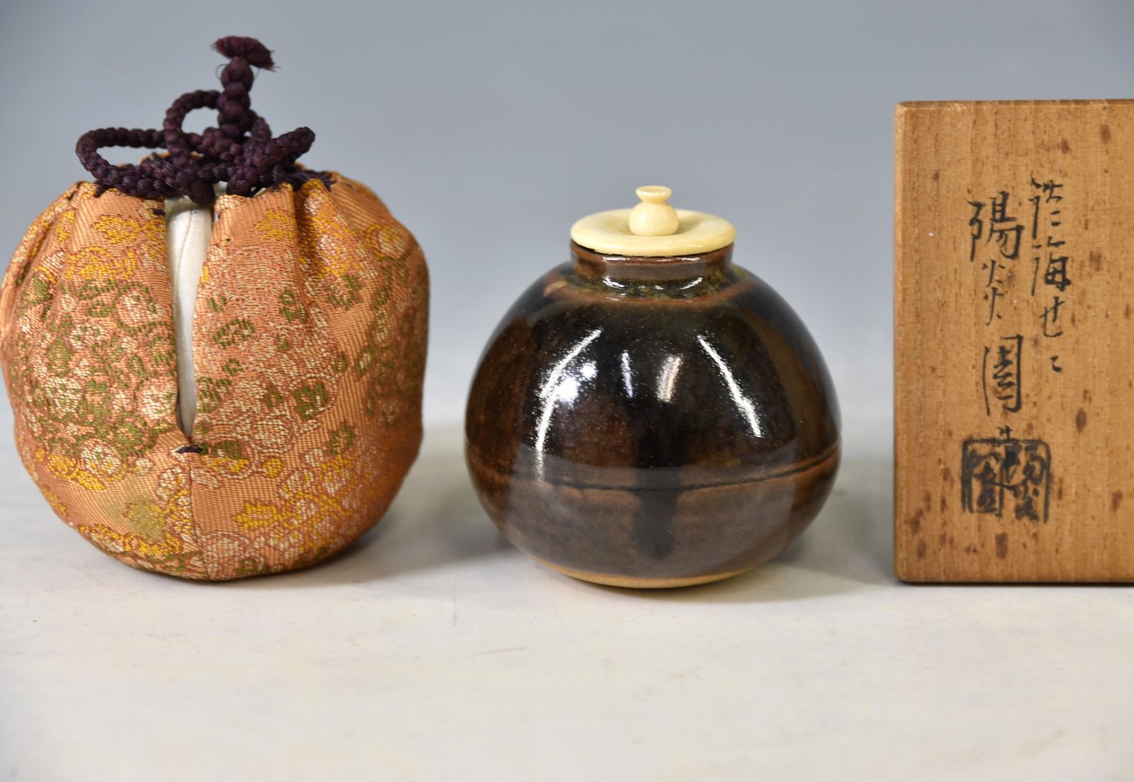 - 美術品・アンティーク・コレクション > 工芸品 > 淡々斎書付 茄子茶入 膳所焼 陽炎園 共箱入 茶道具 濃茶器 唐物 淡々斎書付 茄子茶入 膳所焼 陽炎園 共箱入 茶道具 濃茶器 唐物 【公式