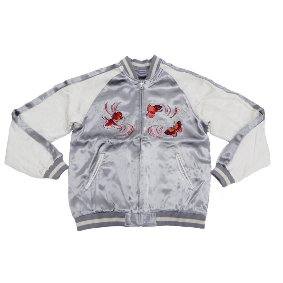 - メンズ > ジャケット・アウター > 【美品】00s バランスウェアデザイン スタジャン 刺繍 ナイロン L グレー ジャパネスク スカジャン 3RSJ-701 菊と蝶と金魚 刺繍 メンズ 和柄