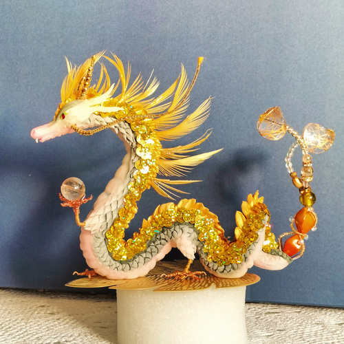 - 美術品・アンティーク・コレクション > 工芸品 > 時代古作品❗中国古美術 大陸古美術 チベット古美術 銀彩龍飾り玉飾 酒杯 香炉 ルチルクォーツと金龍の置物 縁起物 オブジェ 龍神 その他インテリア