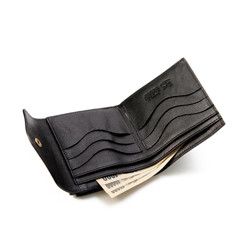- メンズ > 小物 > 美品 イルビゾンテ 二つ折り財布 コンパクトウォレット ブラック レザー がま口 IL BISONTE(イルビゾンテ) 正規取扱店 レザー がま口付き 2つ折り