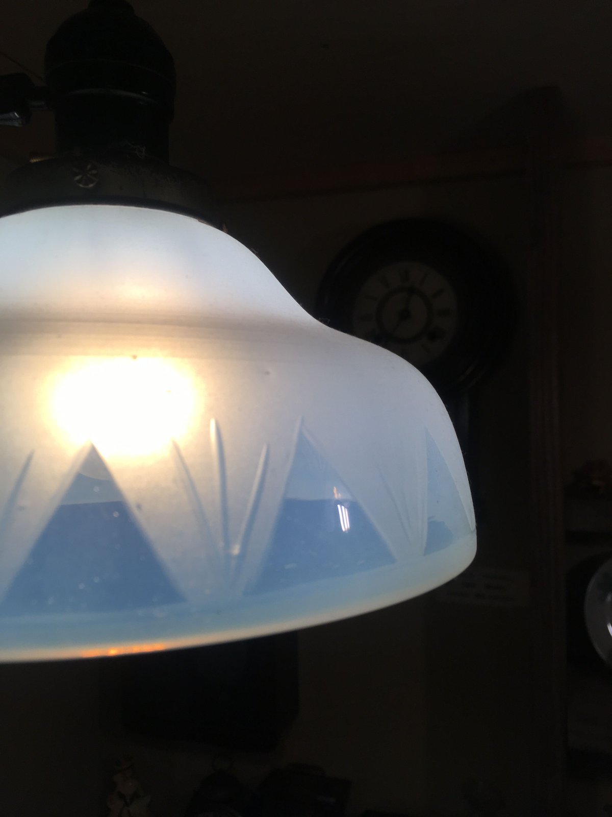 - 美術品・アンティーク・コレクション > 工芸品 > ◆希少 富士マーク入り乳白色電笠 雷文 大正〜昭和時代 戦前 和硝子◆ ◇希少 富士マーク入り乳白色電笠 雷文 大正〜昭和時代 戦前 和硝子