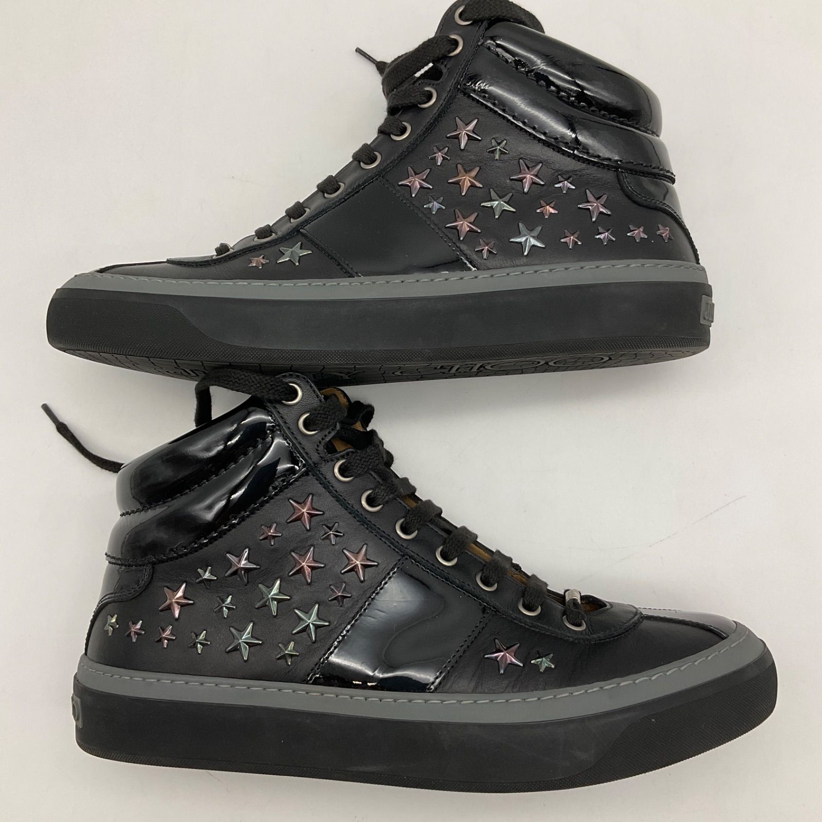 | 商品の特徴 | ジミーチュウ スタッズ ハイカット レザー 42 黒 ゴールド JIMMY CHOO。ジミーチュウ JimmyChoo ハイカット 42 1/2 スタッズ スニーカー。ジミーチュウ JIMMY CHOO ハイカットシューズ スタースタッズ。■72.21/2250ジミーチュウのスタッズデザインが目を惹くハイカットスニーカー。レザー×エナメルの高級感ある一足です。普段使いからコーデの主役まで活躍します。【ブランド】JIMMY CHOOジミーチュウ【サイズ (外寸)】表記:42(約27cm相当)アウトソール全長:約29.8cmアウトソール幅:約10.5cmヒール高:約3cm/筒丈•高さ:約12cm※サイズ感のご質問には実寸比較でご案内しています。【カラー】黒 ブラックゴールド【状態】■ 目立つ大きなダメージなし■ 使用感あり■ 細かな擦れ・小キズあり■ 細かい汚れあり■ シワあり■ スタッズ部分にキズあり■ かかとのすり減り少なめ【おすすめポイント】出品前にクリームで保湿・磨きを行い、できる範囲でリペア・清掃をしています。艶やかで清潔な状態に整えており、気持ちよくご着用いただけます。※シューキーパーは付属いたしません。【ご購入前の注意】匂いや細かな状態に敏感な方はご購入をお控えください。状態にご理解いただける方のみご検討をお願いいたします。【素材】レザーエナメル【発送について】基本的には箱なしでの発送となりますが、商品に応じて段ボール等を使用する場合がございます。靴は型崩れ防止のため詰め物を入れ、片足ずつ丁寧に梱包しております。24時間以内の発送を心がけております。ご希望がある方はご購入前にコメントください。【返品について】基本的に評価後の返品、返金は対応不可となります。【購入元】鑑定済の大手中古ブランド買取店、大手リユースショップにて購入になります。※詳しい返品・注意事項はプロフィールに記載しています。【商品一覧はこちら】#あぱれるshopsAOI【靴、パンプス一覧はこちら】#あぱれるshopsAOI靴ジミーチュウ スニーカー ハイカット スタッズJIMMY CHOO レザー エナメル メンズラグジュアリー ハイブランド 黒 金管理番号2250/72.21/07098。ジミーチュウ JimmyChoo ハイカット 42 1/2 スタッズ スニーカー。靴 Nike Air Jordan 1 High OG Hyper 。Gallery Dept. × Vans Authentic 44 Black。ニューバランス new balance M991FLB 28.5cm。送料込★On Cloud 6 ブラック スニーカー 27.5cm。■ CONVERSE(コンバース) CANVAS ALL STAR J OX。New Balance 993グレー USA製。靴 Travis Scott Nike WMNS AJ1 Low \"Canary\"。靴 Nike Air Jordan 1 High OG Chicago。NIKE NOCTA GLIDE ナイキ ノクタ グライド 27.5。テンガマン。【未使用級】NAMACHEKO MURABI SNEAKER シルバースニーカー。靴 Nike SB Dunk Low Los Angeles Dodgers。old vans fat shoes 90s~ 厚タン。Oakley エッジフレックス スニーカー ブラック/レッド。靴 Graphpaper PUMA \"SPEEDCAT PLUS\" 27cm | ||