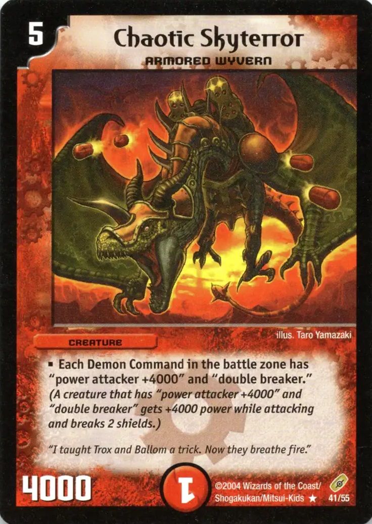 | 商品の特徴 | デュエルマスターズ Scarlet Skyterror クリムゾンワイバーン英語。Scarlet Skyterror | Duel Masters Wiki | Fandom。クリムゾン・ワイバーン 1枚の通販 あっき(2002973216) | magi。全てのブロッカーを破壊するアーマードワイバーン。デュエルマスターズ Scarlet Skyterror クリムゾンワイバーン英語。- カード名: Scarlet Skyterror- カードタイプ: アーマードワイバーン- コスト: 8- パワー: 3000- 能力: バトルゾーンに出した時、全てのブロッカーを破壊する- シリーズ: デュエルマスターズご覧いただきありがとうございます。デュエマ ブレインスラッシュ 金 金トレジャー。 | ||