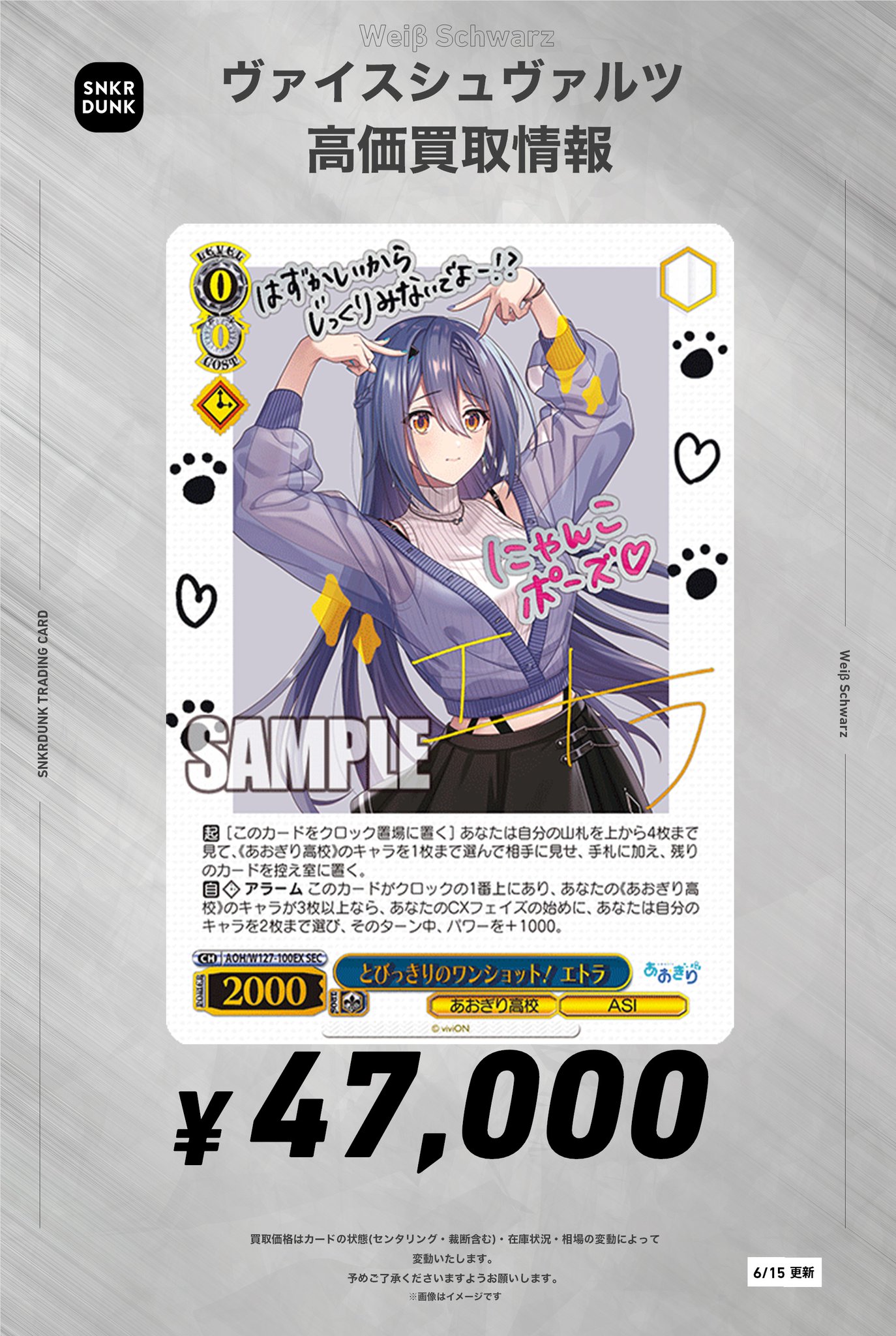- トレーディングカード > ヴァイスシュヴァルツ > ヴァイスあおぎり高校 SEC とびっきりのワンショット!月赴ゐぶき(サイン入り) あおぎり高校」SECカード「とびっきりのワンショット!月赴ゐぶき」