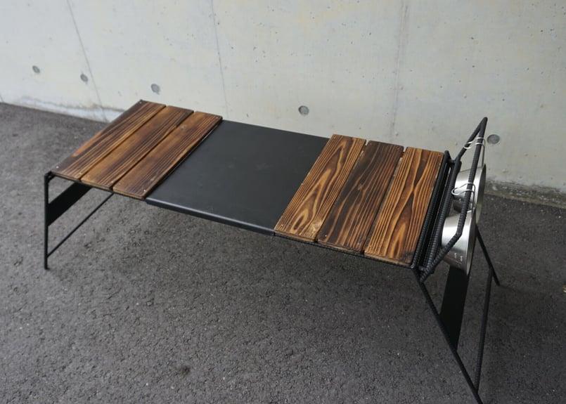 - アウトドア > テーブル・チェア・ハンモック > ウォールナット無垢材 細板 タフまる対応アイアンテーブル キャンプテーブル ショップ カ*太様 ウォールナット無垢材 細板 タフまる対応アイアン