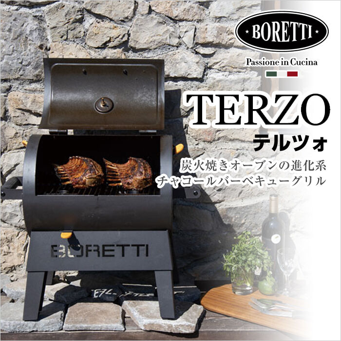 | 商品の特徴 | BORETTI TERZO チャコールバーベキューグリル 【公式通販】。BORETTI TERZO チャコールバーベキューグリル 【公式通販】。楽天市場】ボレッティ社 テルツォ Boretti TERZO 品番:87150。新品未使用品です。ご検討よろしくお願いします。イタリアのキッチンライフスタイルブランド「ボレッティ」が送り出したBBQの秘蔵アイテム。ドア付きのグリルは、オーブン内で熱が均等に循環し、食材の全周から包み込むため、ジューシーに、時にスモーキーな調理ができます。炭火焼きのコツ、遠火でじっくりを手軽に実現できます。イタリアの洗練されたデザインに加え持ち運びも容易なため、家のバルコニーや庭、キャンプ場など多彩なシーンで活用できます。。楽天市場】ボレッティ社 テルツォ Boretti TERZO 品番:87150。【極美品/未使用】イワタニ カセットガス炊飯器HAN-go CB-RC-1。プリムス 2251 希少 激レア。薪 ヒノキ100束(800kg〜1,000kg)。IH対応 鉄板 435×304×15mm 愛宕山工業 鍛冶屋鉄板 大きい。【廃盤】スノーピーク アルペンカップ チタンマグ すずらん | ||