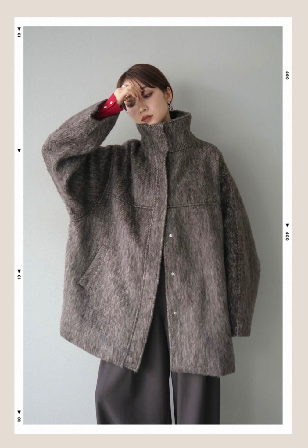 | 商品の特徴 | lumier シャギースタンドカラーコート ブラウン LIAN リュミエ - メルカリ。LIAN シャギースタンドカラーコート チャコール lumierリュミエ - メルカリ。予約]スタンドカラーシャギーコート/brown – Lumier。新品未使用こちらはLumierと同型ですがメーカーから直接仕入れているためタグは異なります。たくさん出品しています♡#あき123の部屋おまとめ割フォロー割あり【商品について】ふんわりとしたシャギー素材が上品な印象を与えるスタンドカラーコート。 柔らかな風合いと軽やかな着心地で、冬の装いにぬくもりをプラスします。 スタンドカラーが顔まわりをすっきり見せつつ、首元までしっかり暖かく包み込むデザイン。 ヒップまで隠れるミドル丈で、バランスの取りやすいシルエットも魅力です。 シンプルながらも素材の表情が引き立つ1着で、カジュアルにもきれいめにも合わせやすい万能アウターです。 ※ボトムス、キャミソール(インナー)以外の商品は一律でインナーは付属していません。・素材:表地 ポリエステル79% レーヨン7% アクリル7% ナイロン4% 毛2% 綿1% 裏地 ポリエステル100%・お手入れ方法:家庭洗濯不可、クリーニング店へご相談ください。濡れたままの状態で擦れると、色落ち色移りすることがあります。着用中の摩擦や汗、水濡れ、濃淡差があるものとの重ね着にご注意ください。また、性質上毛羽立ちや毛玉が発生する場合があります。【サイズガイド】肩幅56cm バスト146cm アームホール68cm 袖丈55cm 袖口38cm 着丈82cm 裏地あり 透け感なし 伸縮性なし サイドポケットあり フロントボタンあり・モデル身長:159cm・着用サイズ:F※商品画像は、光の当たり具合やパソコンなどの閲覧環境により、実際の色味と異なって見える場合がございます。予めご了承ください。※サイズ表記について商品によりサイズに多少のバラツキがございます。 採寸用サンプルの実寸値となりますので、お手元にお届けする商品と表記寸法の間に多少の誤差が生じる場合がございます。 サイズ表記はあくまでも目安としてご参照ください。。人気 シャギースタンドカラーコート lumier hellam リュミエ - メルカリ。美品♡23AW♡アルアバイル ウールミックス ボアPコート 金ボタン ブルー 1。近年モデル パールクロスミンク クロップド ファーコート 軽量毛皮 XL エンバ。エンバ 高級毛皮 リアルファージャケット 裏地刺繍 ベージュ フリー 毛並み良。ジャスグリッティー ファーコート ベージュ サイズ1。【未使用級】HERNO ボアブルゾン エコファー ダウン ブラック 42 L。⭕️タトラス ジャケット ブルゾンNUPLEA (2)Mレオパード柄ファー。ミンク コート ロングコート ホワイト 38 アルパカ。美品PRADA 黒 羊毛ファー ロングコート サイズ40。ブラック ミンクファー ロングコート。リアルミンクファーコート パステルミンク 大きいサイズ 13号 y2k 毛皮。【美品】BALMAIN 黒 アンゴラ ロングコート ファー付き 裏地シルク。DHOLIC 2WAYニットスリーブエコファーダウンジャンパー・B013059。REFLEM レフレム クロミ ファー コート パーカー サンリオ ジャケット。【Rosé Muse】eco fur short coat。RRdd様 ロシアンセーブル ファー コート 《貂皮 毛皮 大衣》 | ||