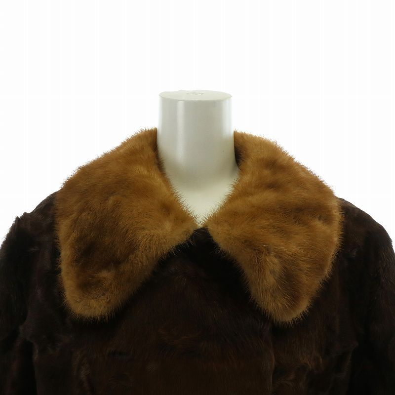 - レディース > ジャケット・アウター > カネボーシルク ミンク×ラムファー付シルクコート ダークブラウン L ノーブランド品 ラムファー コート 衿ミンク アウター 毛皮 ミドル 11