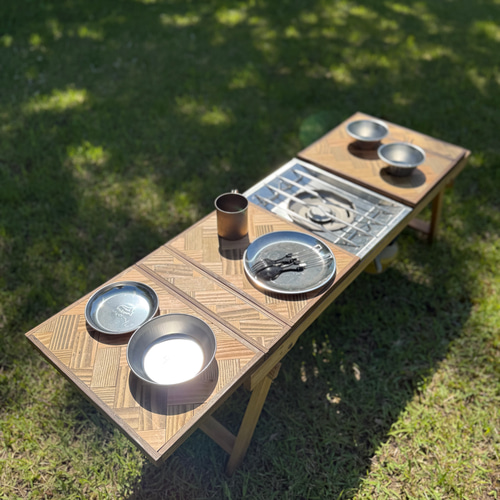 - アウトドア > テーブル・チェア・ハンモック > フラットバーナーテーブル igtテーブル フォールディングテーブル ヘリンボーン 折りたたみキャンプテーブル|フラットバーナー対応・ヘリンボーン天板