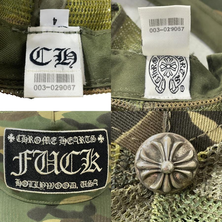 | 商品の特徴 | Chrome Hearts 迷彩キャップ FUCK刺繍 Chrome Hearts 迷彩キャップ。2026年最新】chrome hearts fuck capの人気アイテム - メルカリ。迷彩 CHROME HEARTS キャップ。迷彩柄のChrome Heartsキャップ、FUCK刺繍入り、スナップバック調整可能。。CHROME HEARTS クロムハーツ FUCK トラッカー キャップ CHROME HEARTS。- ブランド: Chrome Hearts- デザイン: 迷彩柄- 刺繍: FUCK- 素材: メッシュ- 調整可能: スナップバック正規品ですご覧いただきありがとうございます。クロムハーツ帽子 | ||